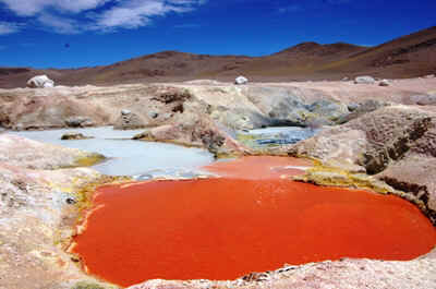 lagunes multicolores. Les paysages sont fantastiques ! Une piscine d'eau chaude nous